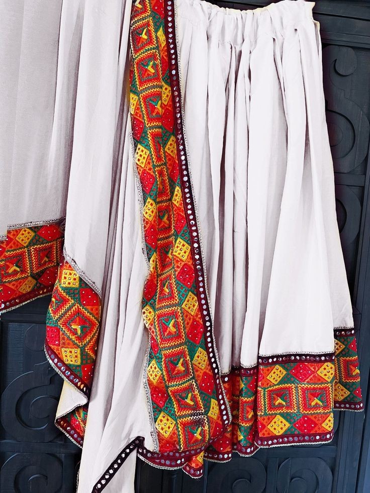 Thirma Phulkari: Thirma Phulkari is a style of embroidery where the embroidery is done using white or cream-colored threads on a colored cloth. The embroidery is usually done using a double running stitch.