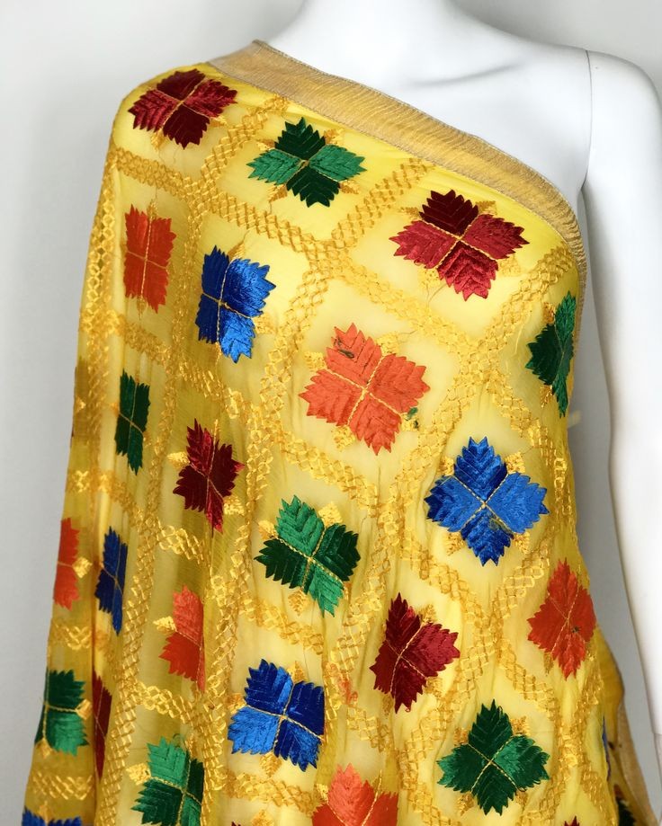 Phulkari embroidery is a traditional art form of Punjab, India, known for its vibrant colors, intricate designs, and cultural significance. Phulkari literally means ‘flower work,’ and it is a form of hand embroidery that involves creating intricate floral patterns on a piece of fabric using brightly colored threads. Phulkari embroidery is a popular form of textile art in Punjab, and it is used to decorate shawls, scarves, dupattas, and other garments.