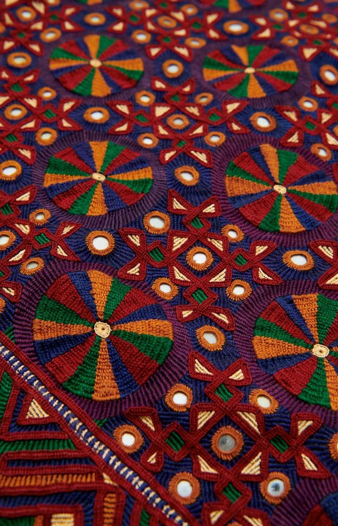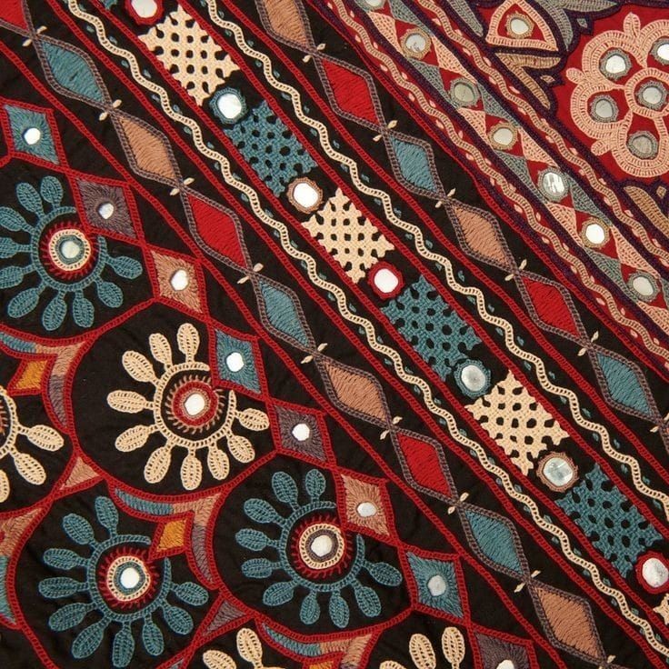 One of the most distinctive features of Kutch embroidery is the use of mirrors. The mirrors are typically circular or diamond-shaped and are often encased in brightly colored thread. The mirrors are believed to bring good luck and ward off evil spirits.