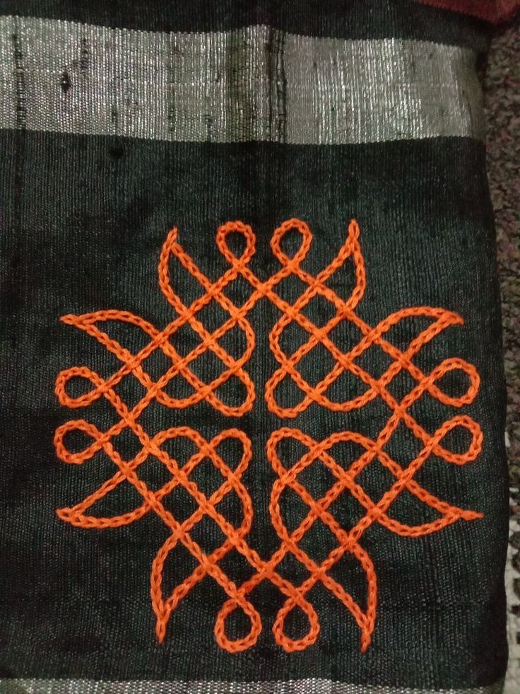 Herringbone stitch: Herringbone stitch is used to create a decorative, zigzag pattern in the embroidery.